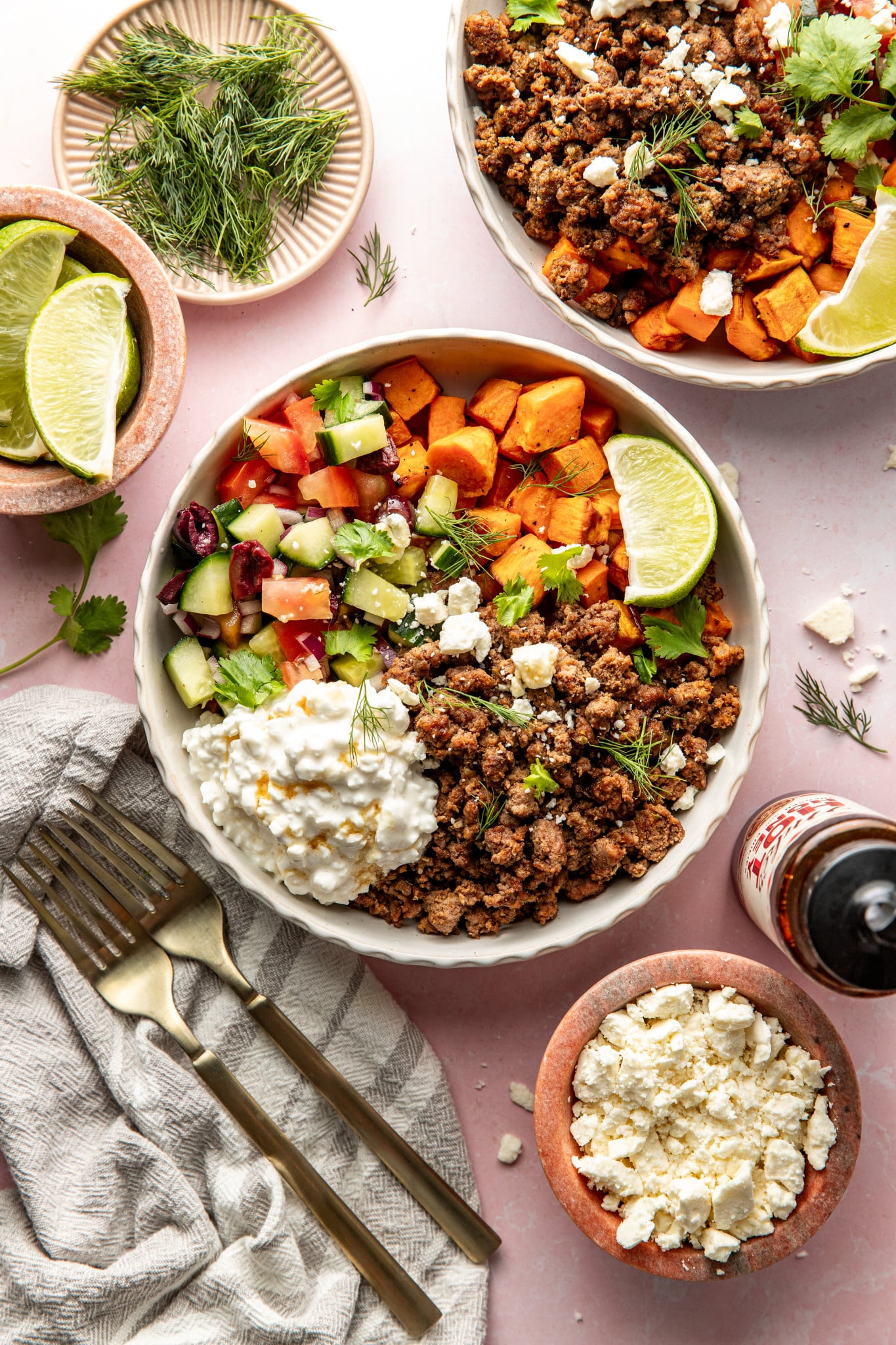 Mediterranean Ground Beef Sweet Potato Bowls