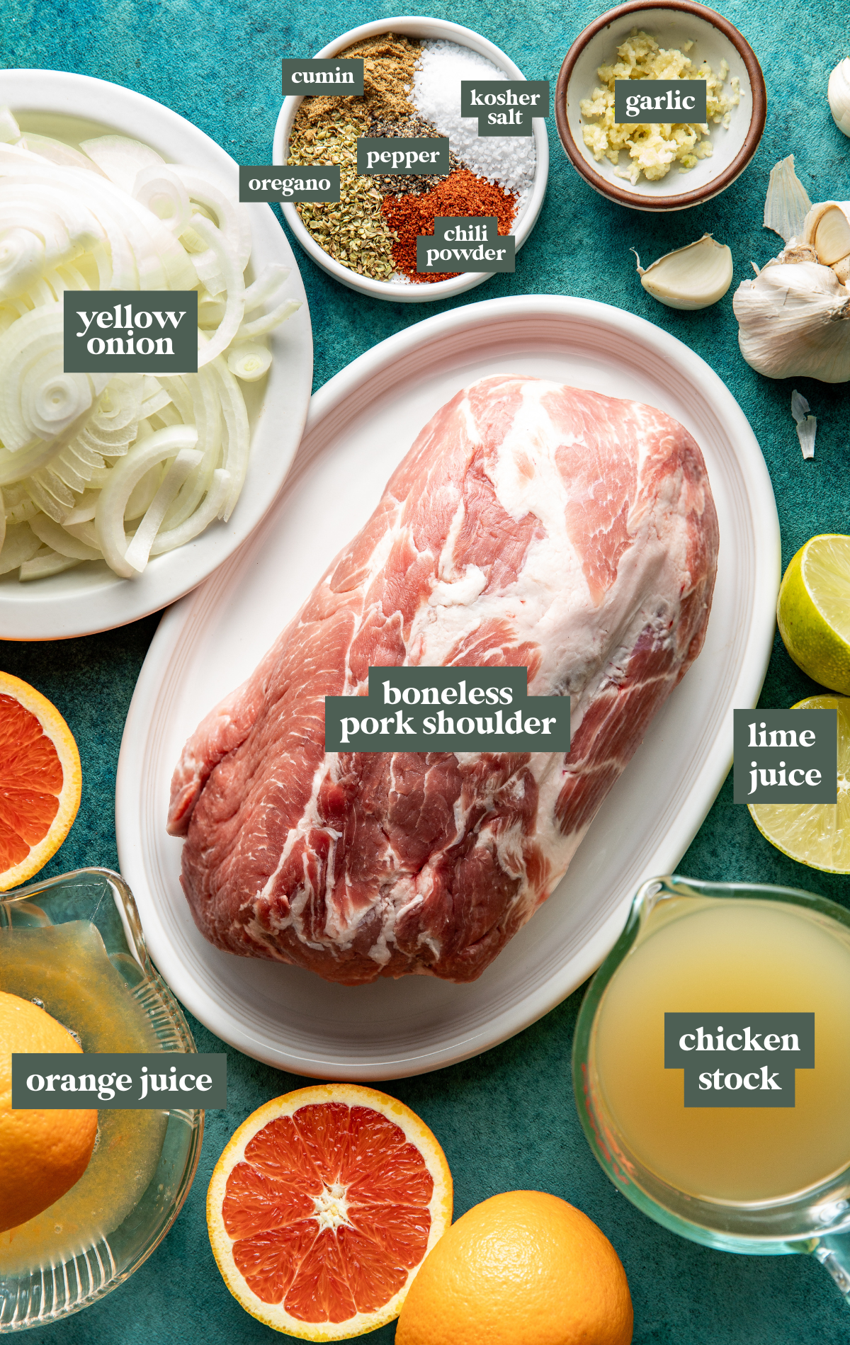 - Citrus: Use FRESH citrus (not the store-bought kind!!) for the best flavor. The fresh orange and lime juice add brightness and balance to the flavor while also helping to tenderize the meat!