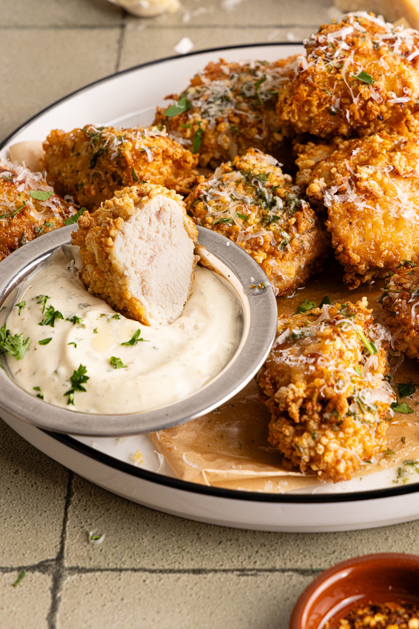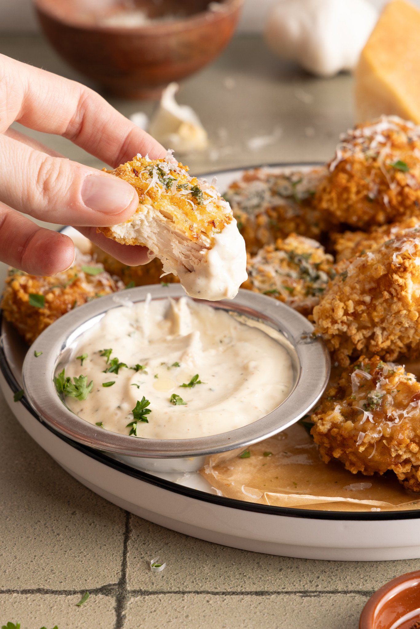 - Dip: Dunk these boneless wings in my Garlic Parmesan Aioli (see recipe below) or use your favorite dipping sauce.