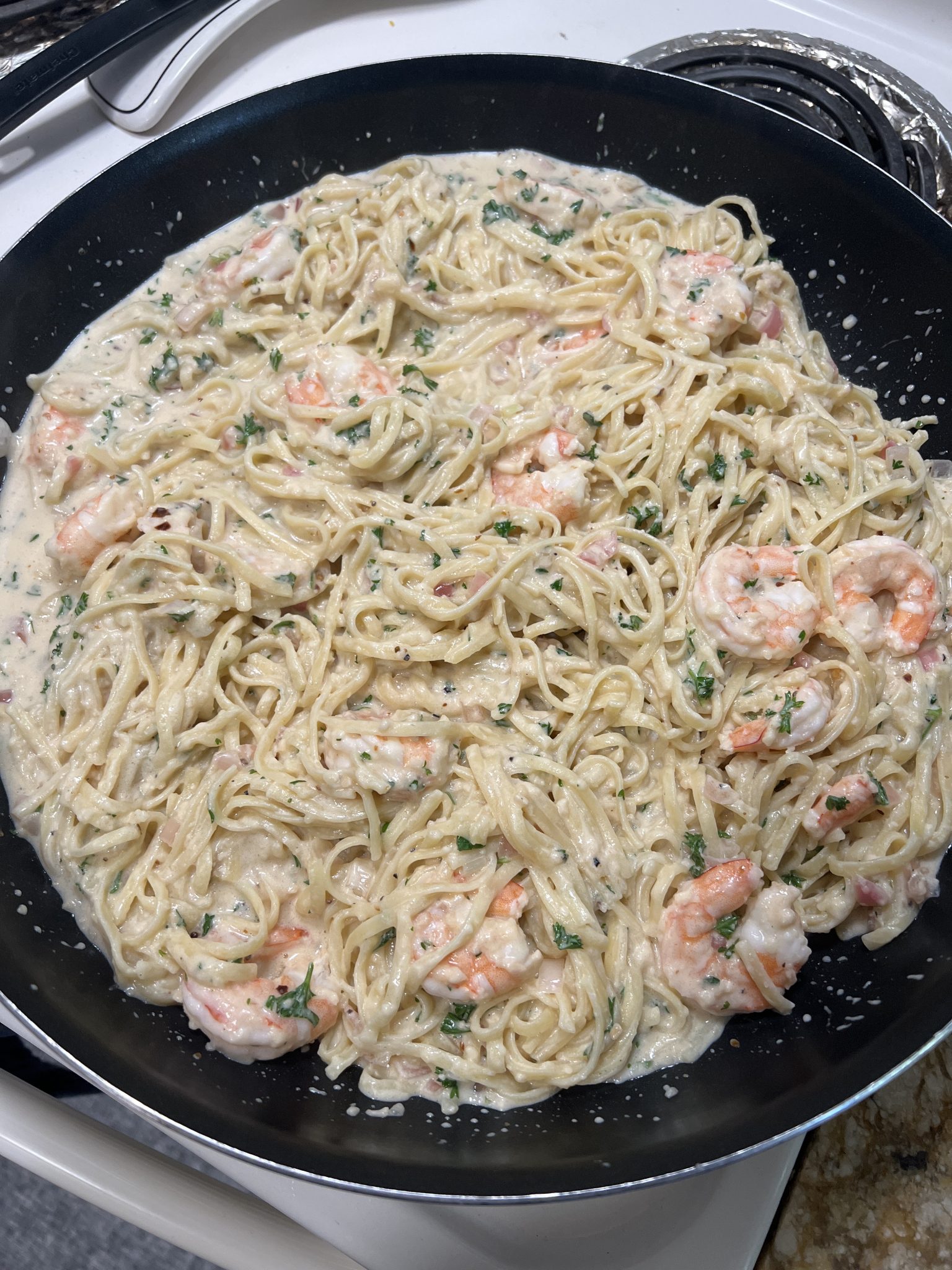 Say hello to your new favorite main dish where lemon, garlic, white wine and Alfredo sauce meet hearty shrimp and pasta!