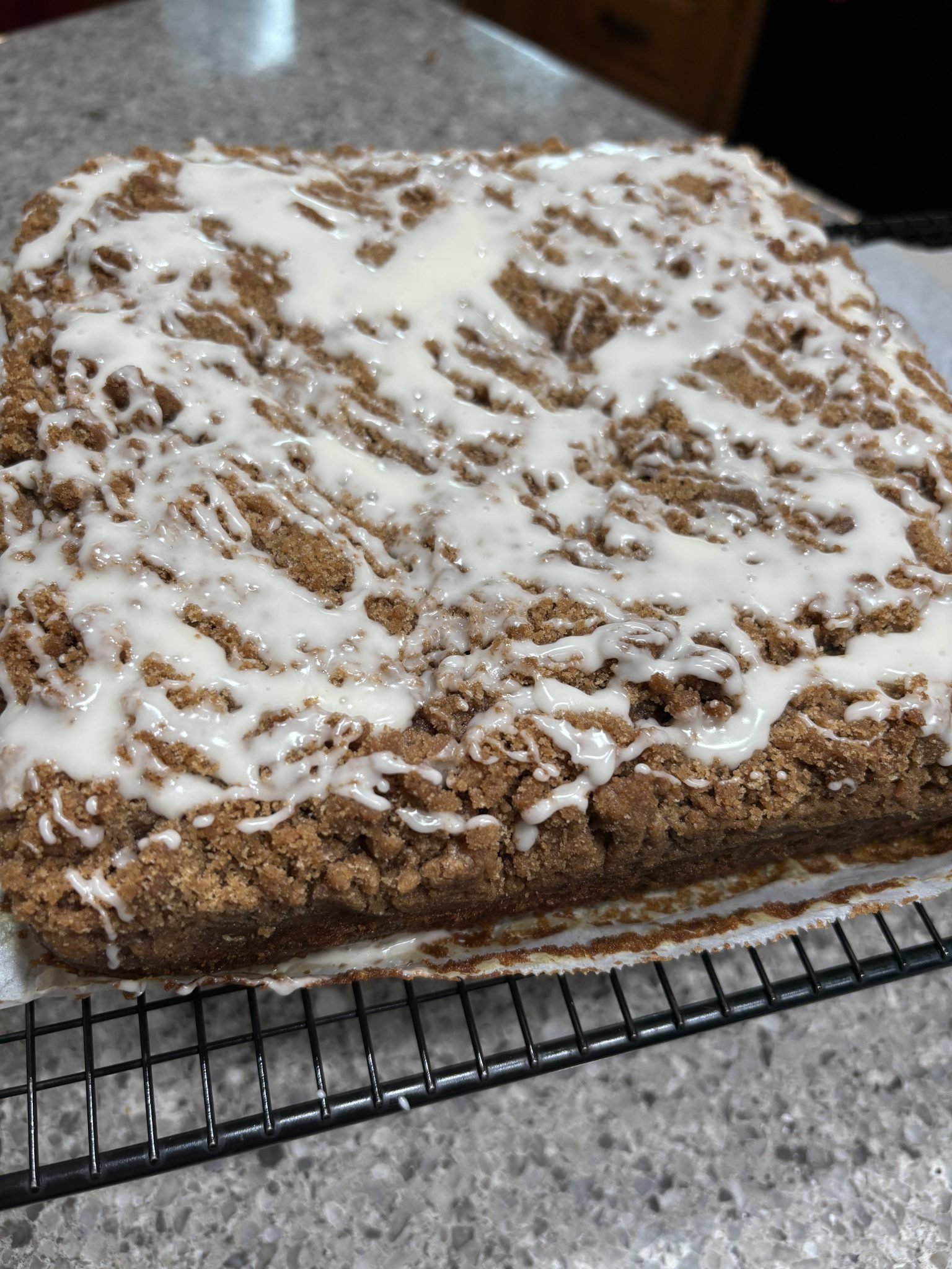 Delicious and such an impressive brunch recipe! The recipe was easy to follow and turned out perfect. I will absolutely make again. I was worried I didn’t split my batter equally between the crumb layer but it worked great! I didn’t quite use all the glaze as I opted for a drizzle instead of covering it completely.