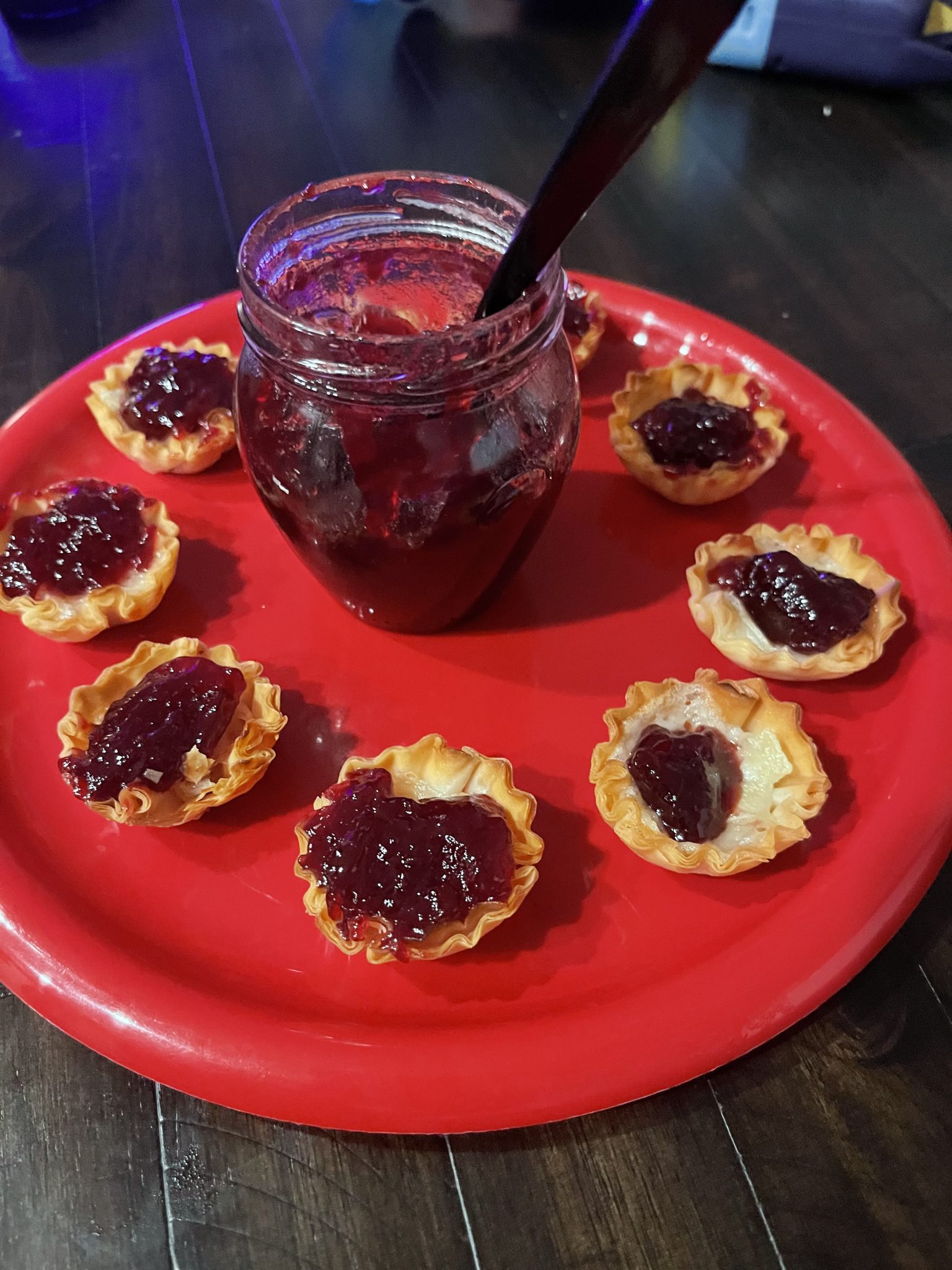 Scoop about 1 tsp. of the fig jam into each pastry shell. Then, put a cube of the brie cheese on top of each.