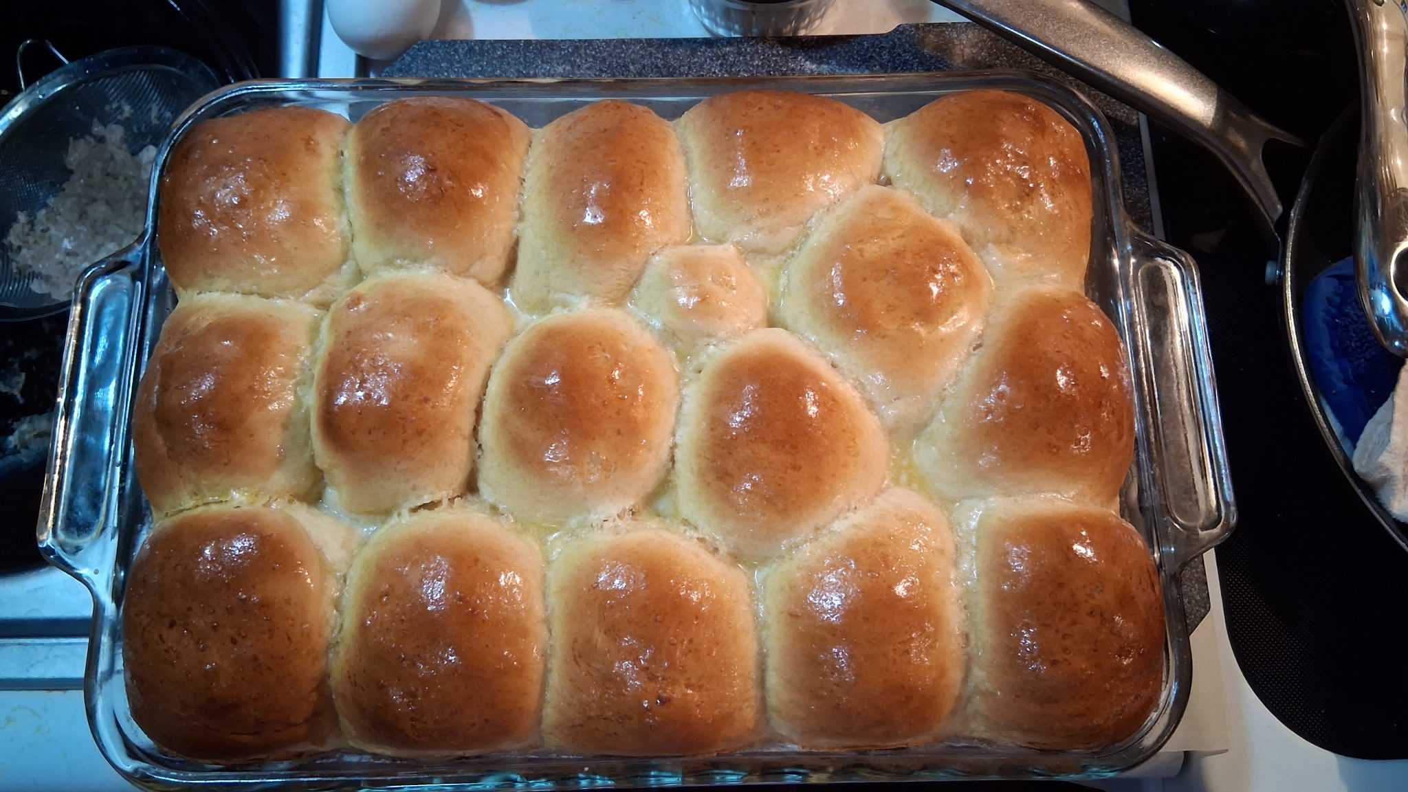 Seriously the best fastest dinner roll recipe. I made a batch today, and they turned out absolutely amazing, I couldn’t help but share right away! I did however want to see if I could use my bread machine to just mix up the ingredients, as I did struggle with a lot of dough stuck to my mixing bowl with using my stand mixer. I did as follows…..did the same thing with heating the milk and butter, added the oil and egg, but I instead added the salt to these wet ingredients, once at the temp as directed in the recipe, I poured that into my bread machine, added the flour on top of that, then the sugar and yeast on top of the flour. I set my bread machine to the dough cycle. I allowed it to do the slow mix to mix the ingredients and then when I heard the machine switch to the faster mix/knead, I set a timer for 8 min. I watched the dough mix and did need to add some extra flour, then let the machine do its thing. After the timer went off I canceled the dough cycle on the bread machine, took the pan out of the bread machine covered with plastic and did the 5-10 min proof. Everything else there after I followed the recipe to a T. In the picture i posted, the top 9 rolls that are left from the first batch I used my kitchen aid mixer with the douh hook. The bottom rolls still in the pan were just out of the oven, using the bread machine to do the mixing and kneading. Both turned out amazing, and extremely consistent using either method! Pillowy, fluffy, buttery goodness!! It was a neat experiment and wanted to share!!! What a great recipe, it’s a keeper for sure!