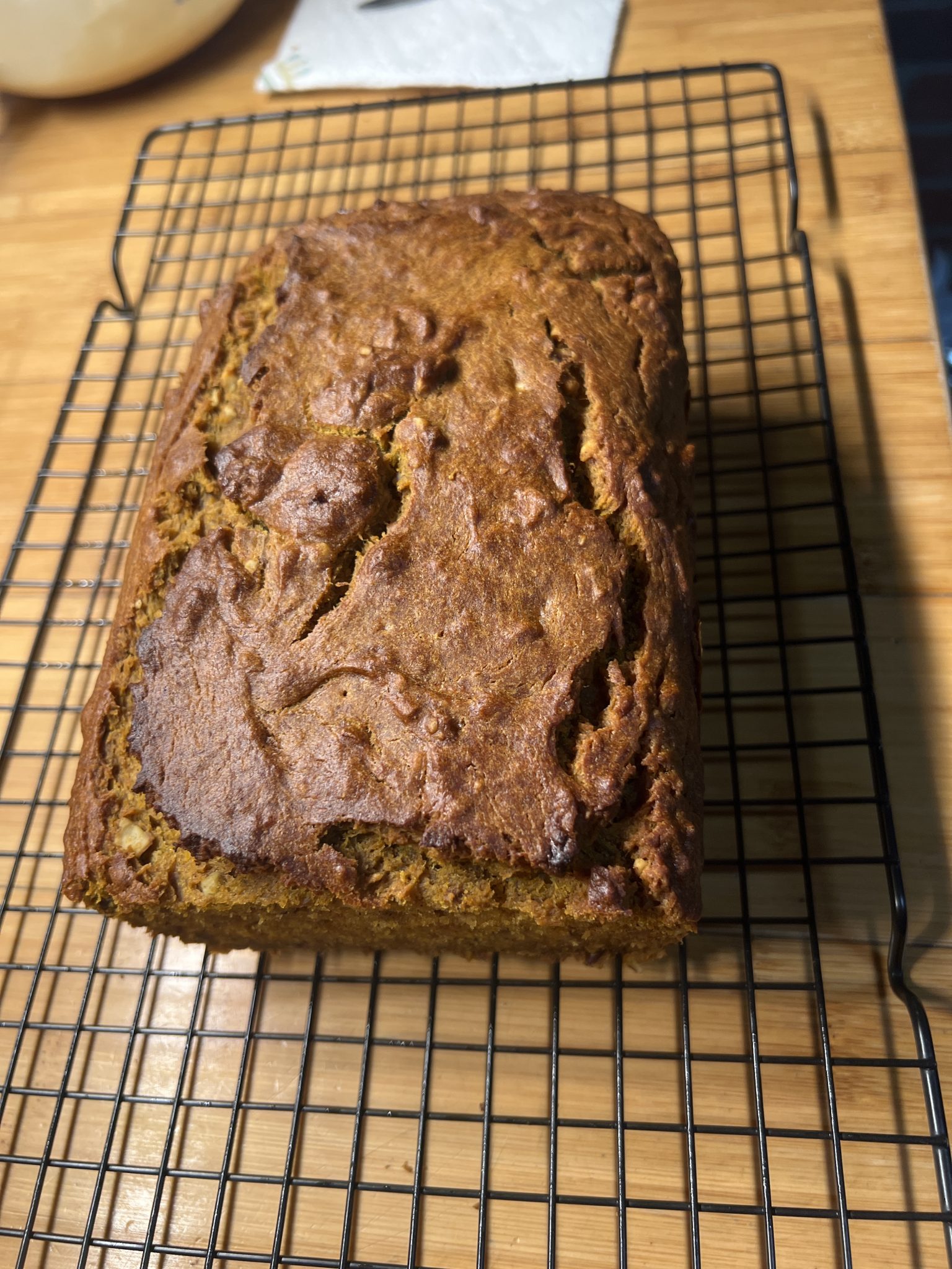 - Since this is a nut free recipe you can always add chopped nuts or pepitas once you have glazed the Pumpkin Banana Bread. This adds protein and a nice crunch to the bread.
