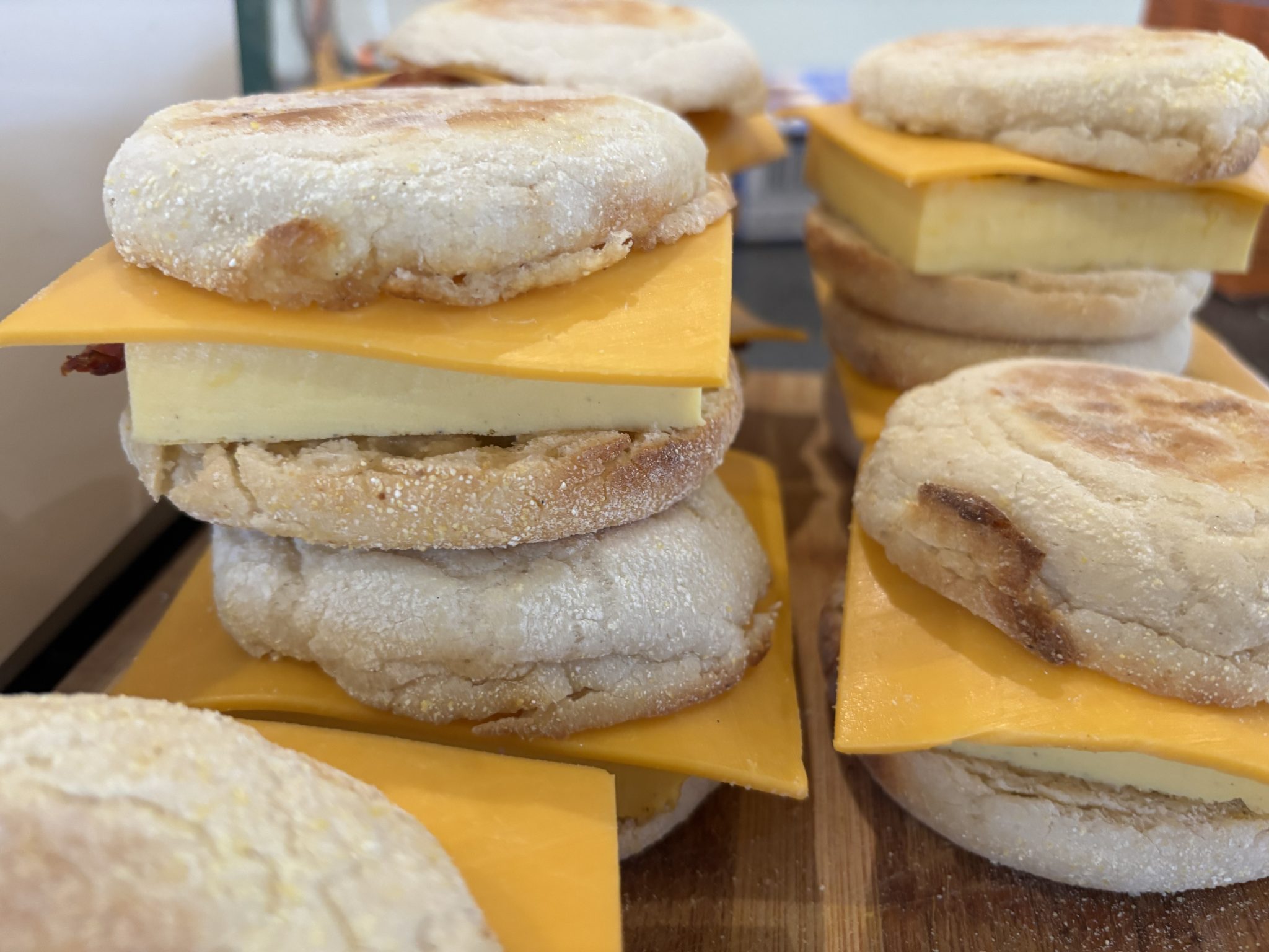 Meal Prep Breakfast Sandwiches are a staple in my household. I love whipping up a batch (or two!) on the weekend and then knowing that I have them in my freezer for mornings when I just don’t have it in me to cook something from scratch for breakfast.