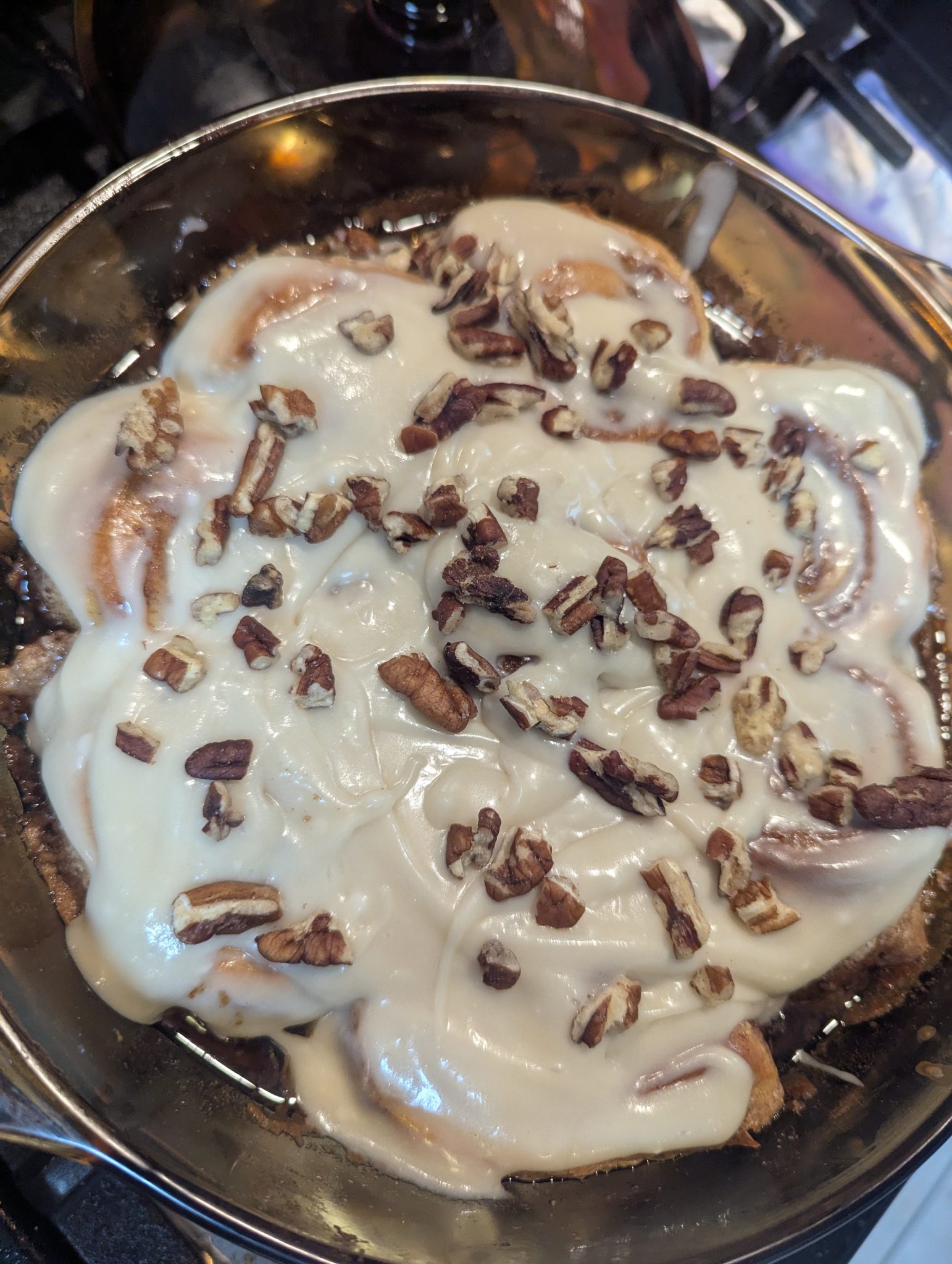 - Follow the recipe through Step 10 (where you shape the rolls, arrange them in the pan with the cinnamon caramel sauce, and cover them).