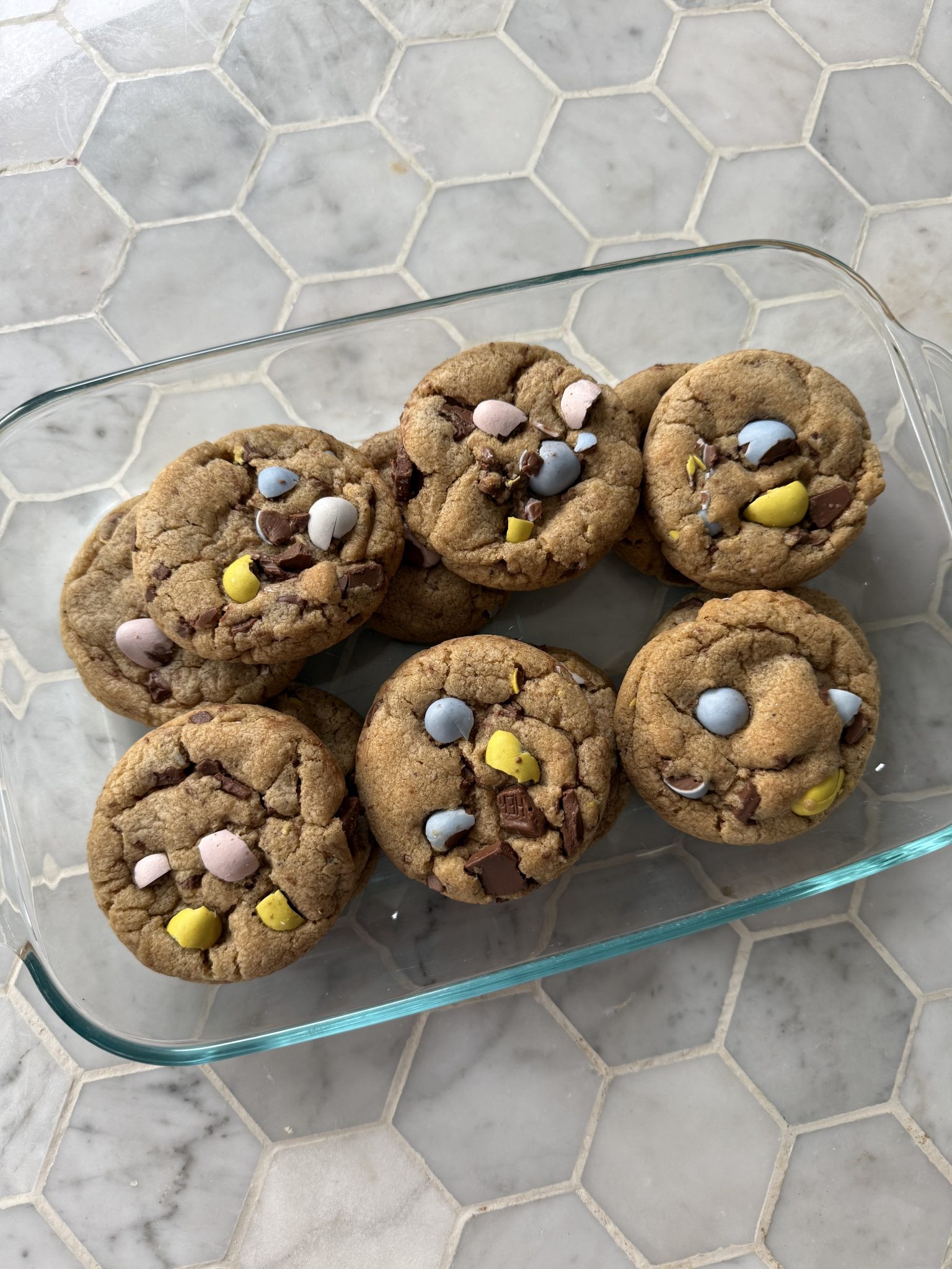 I love these cookies because the chopped mini Cadbury eggs add little pops of crunchy candy shell, which pair perfectly with the pool of melty chocolate. They’re festive, nostalgic, and incredibly easy to make. Perfect for your Easter baking, spring gatherings, or just using up a stash of seasonal candy.