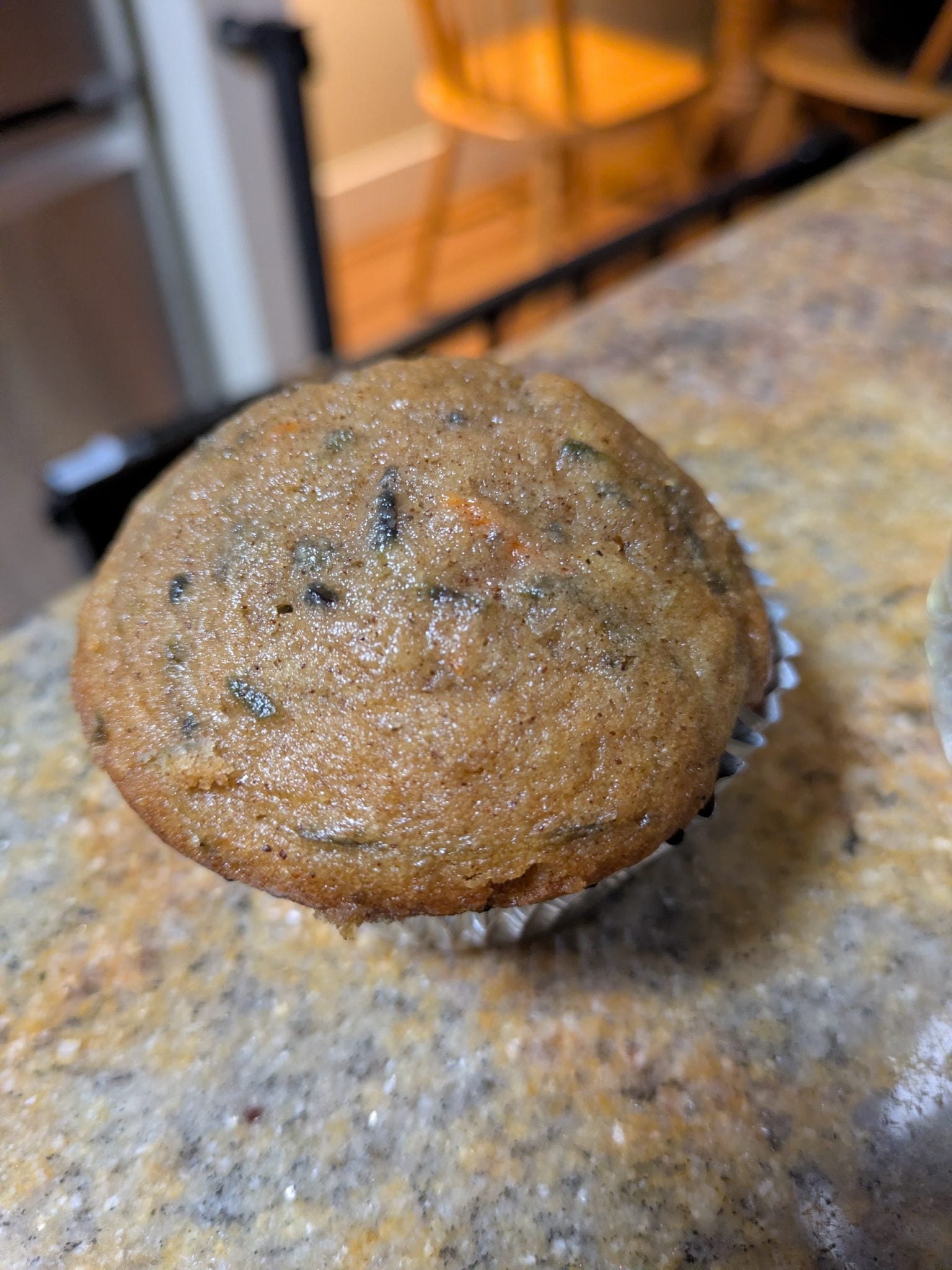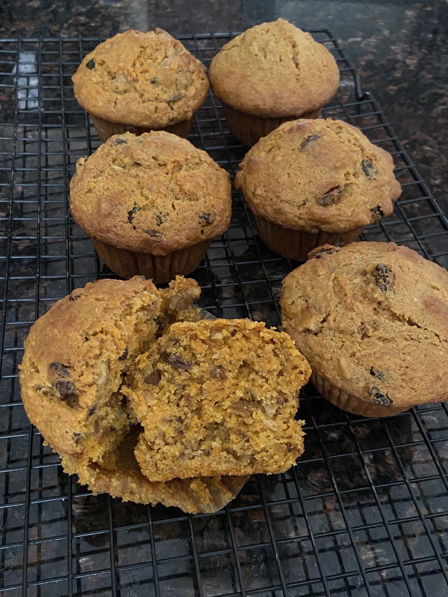 This is the only quick pic I was able to snag before these muffins disappeared! These were so good and easy. My veggie avoiding preschooler loved them and so did I. I did use multicolored carrots so my muffins did have an odd confetti look to them!