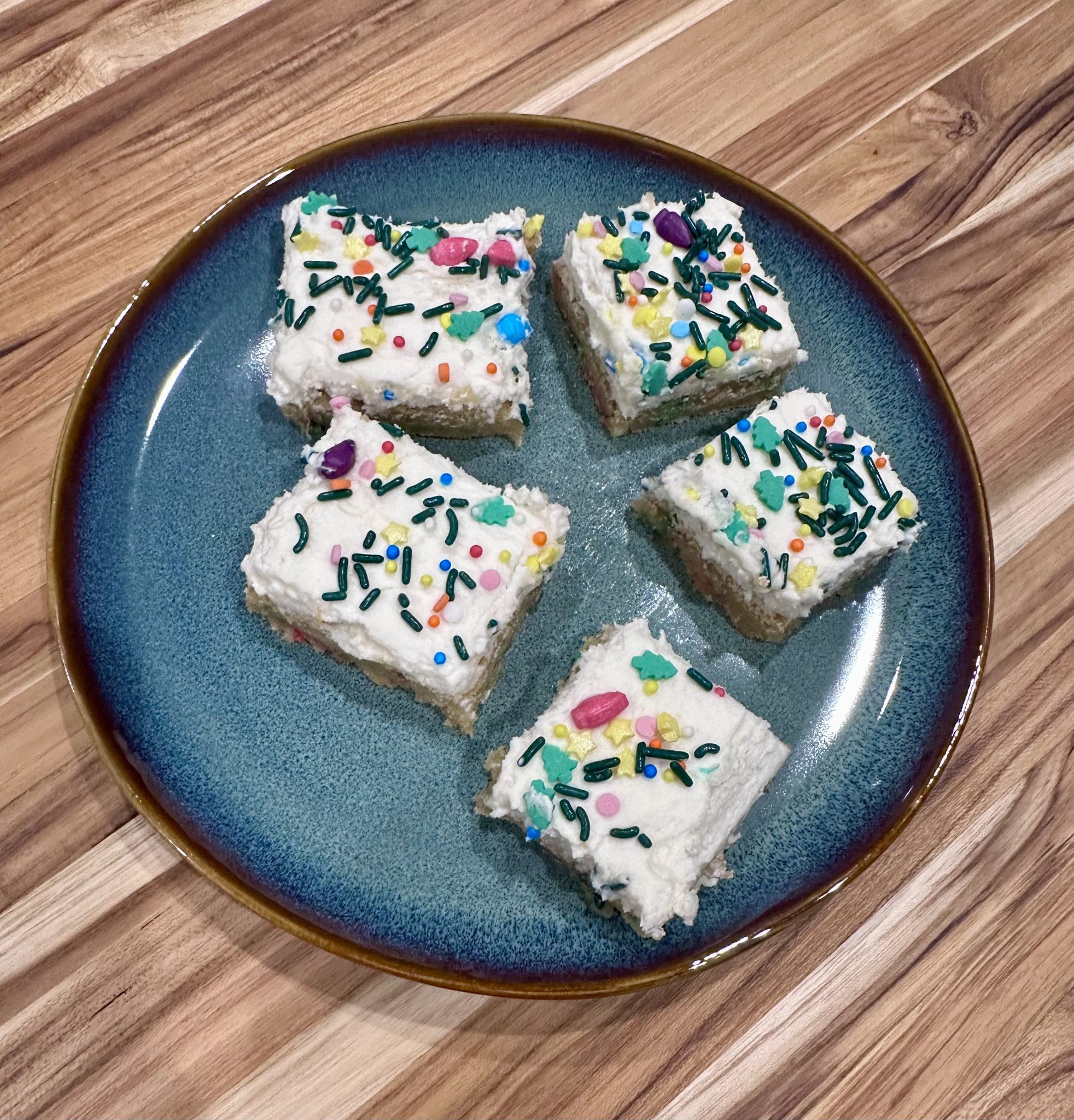 Another banger of a recipe!!! These bars were super easy to make and very tasty. Ran out of red and green sprinkles making the Christmas sugar cookies, so we get blue sugar bars! Thank you for the great recipe!
