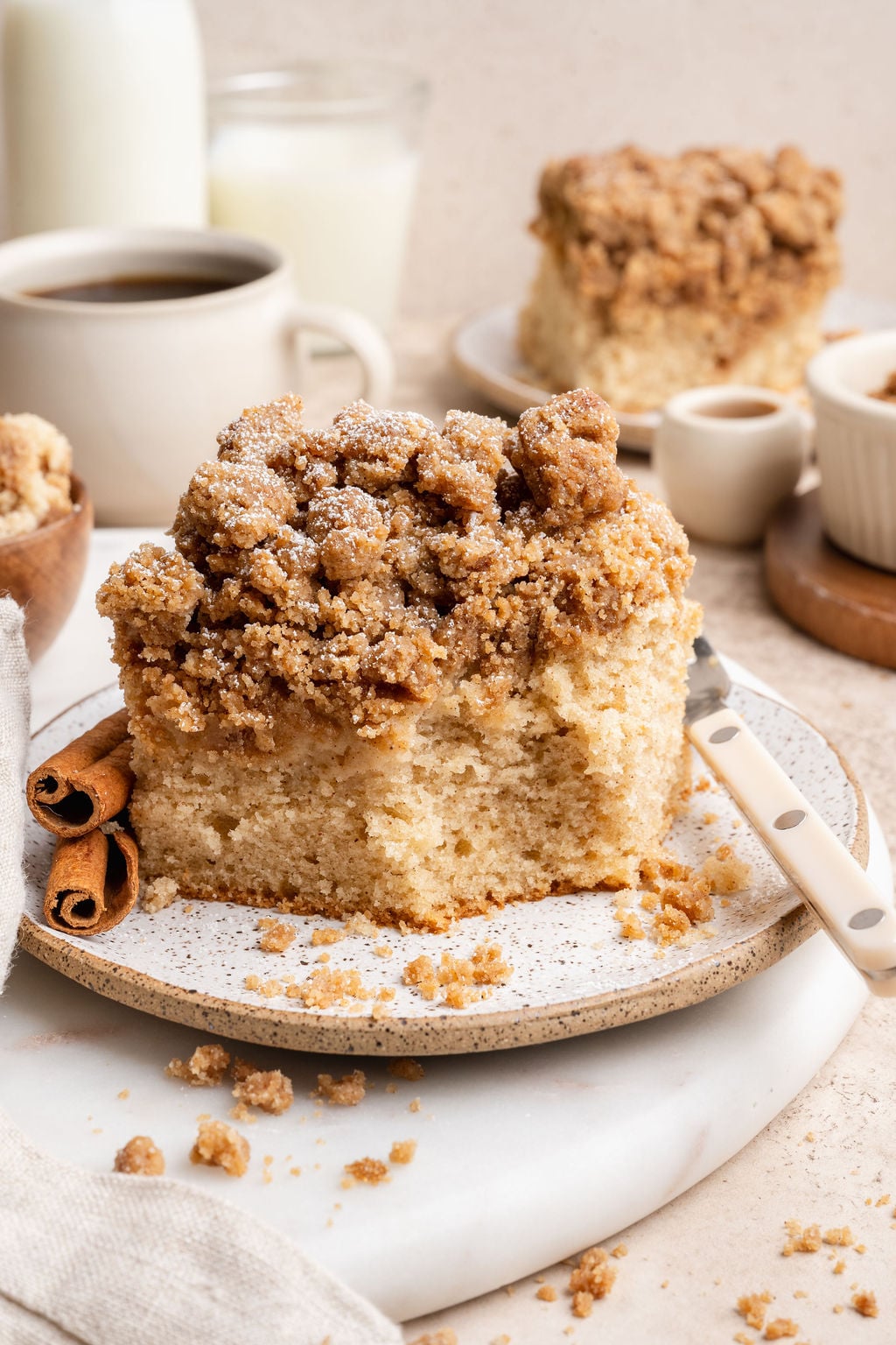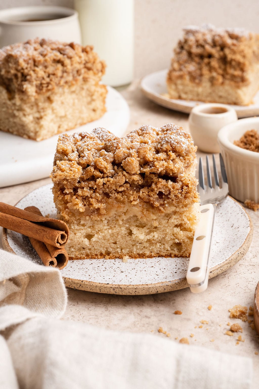 - Cinnamon: gotta have some cinnamon in a Cinnamon Crumb Cake!