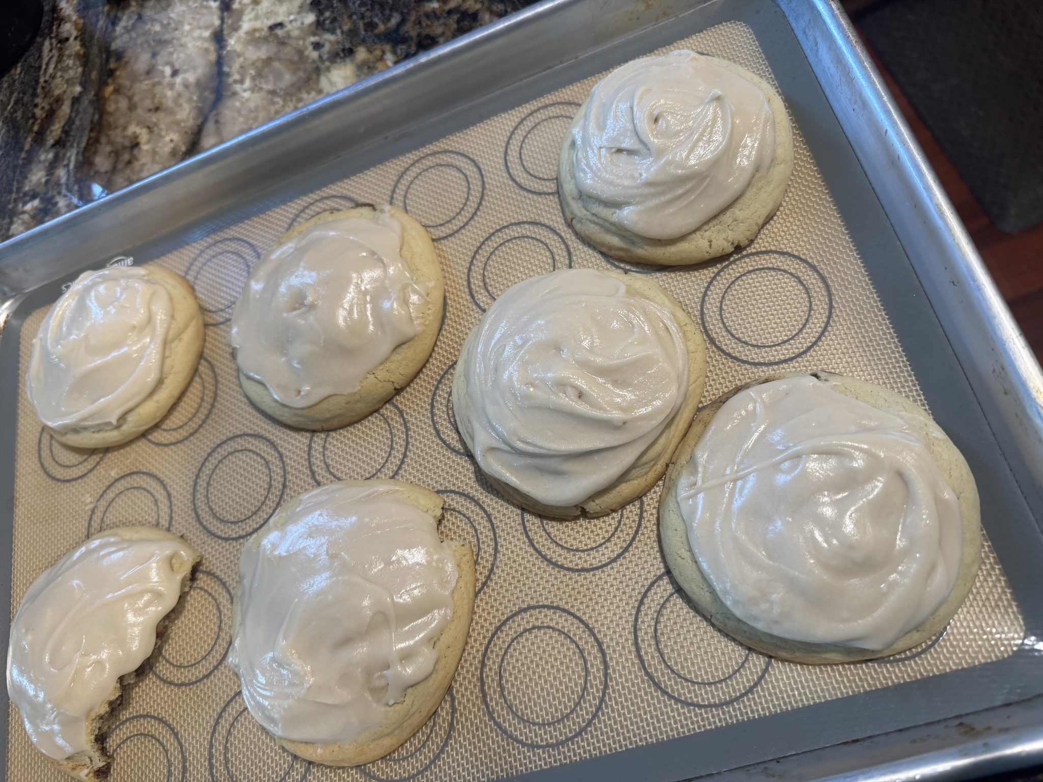 - Spread frosting on top of cooled cookies, sprinkle frosting with more cinnamon if desired. Store cookies in the fridge for up to 5 days.
