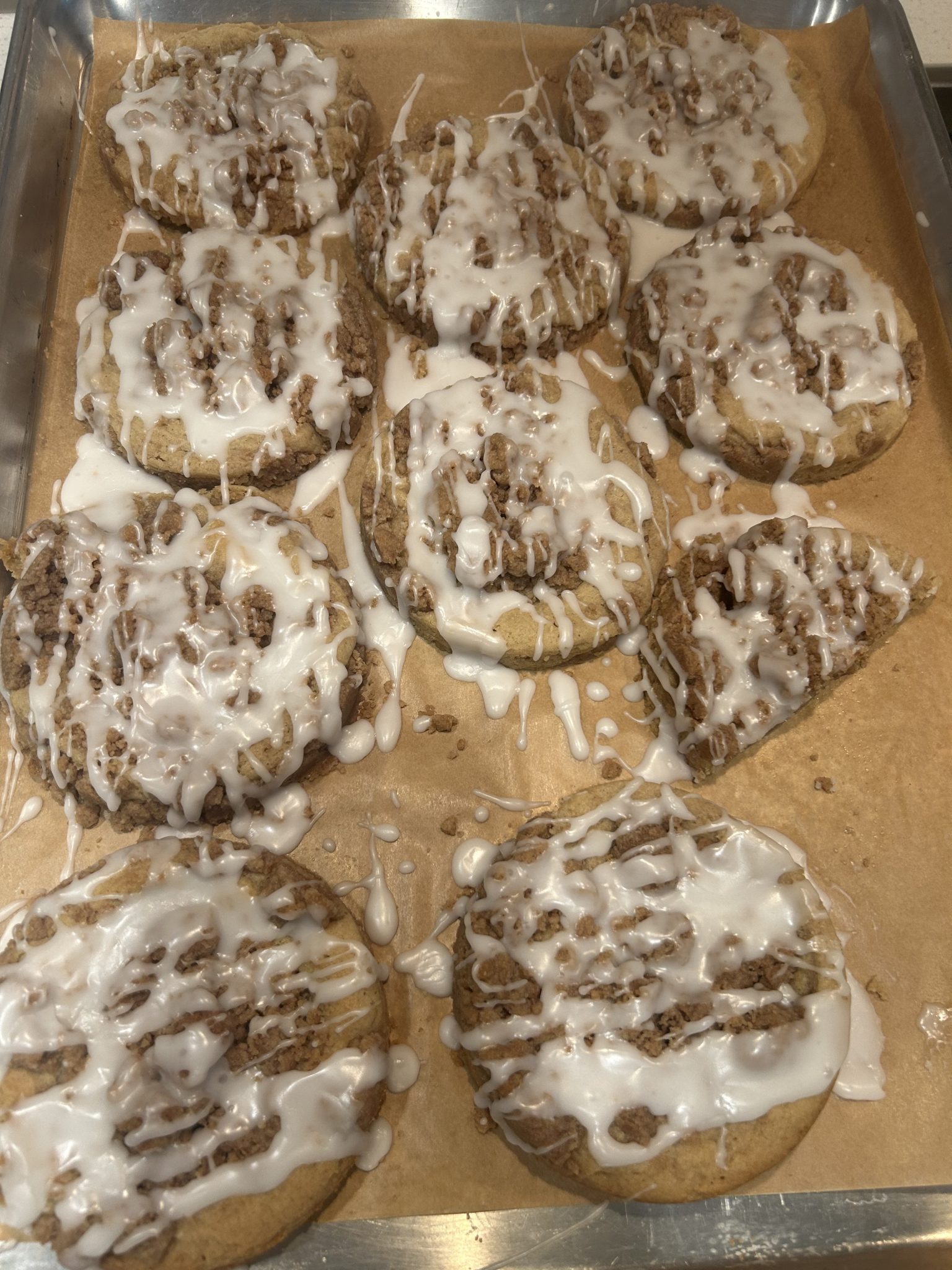 I made these for a work potluck, the theme was “Farmer’s Market” and I wrapped them in individual bags tied with some bakers twine & burlap string with cute little “coffee cake cookie” tag with a link to the recipe at the bottom. I was told they were “heaven in a bag” and “better than Crumbl”. My new favorite cookie!!! I’ll send you a picture on insta 🙂