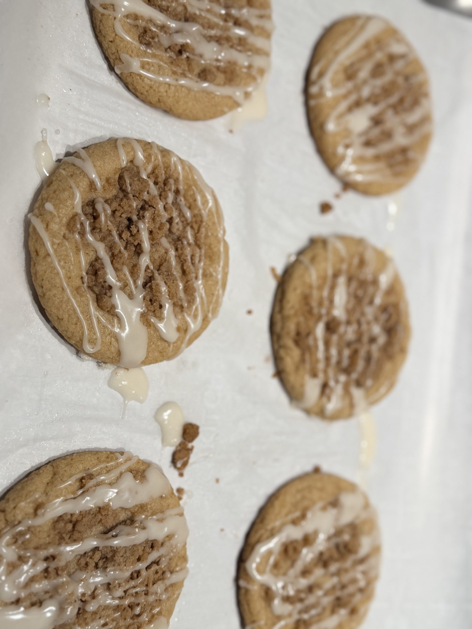 - Double the streusel: If desired, you can double the streusel to have extra streusel topping to garnish the cookies with after they bake.