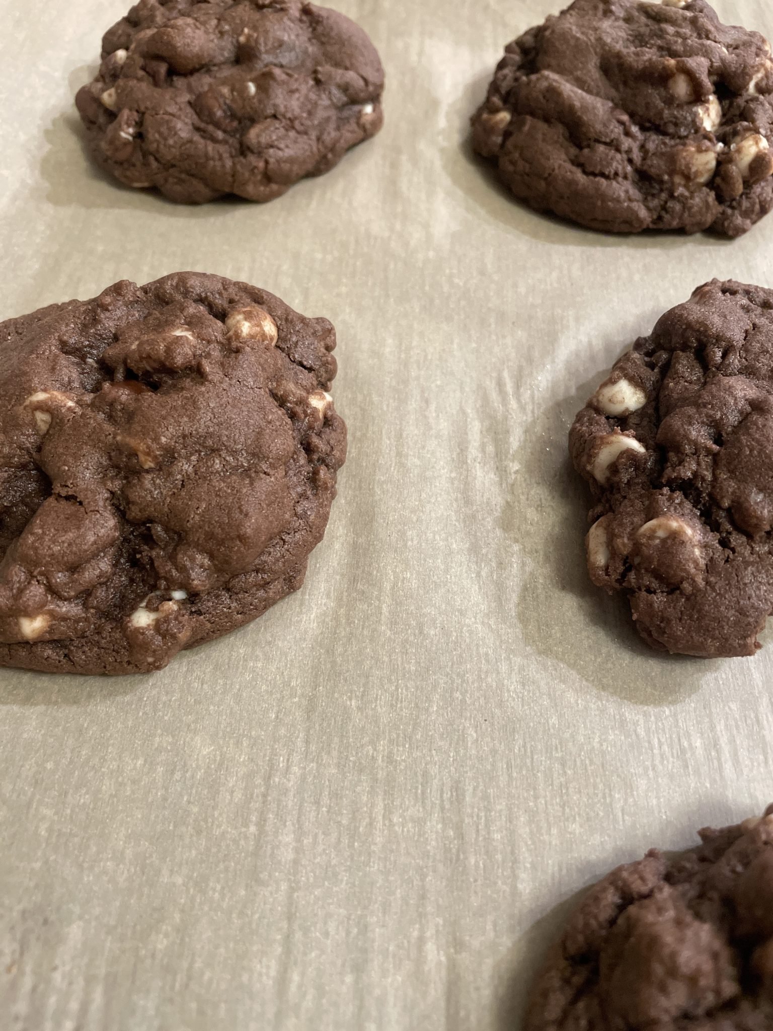 If you’ve ever been to Levain Bakery in New York, you know the cookie. Giant, thick, gooey on the inside, and loaded with chocolate chips. Among their famous creations is the Black and White Chocolate Chip Cookie, which is a rich, dark chocolate dough filled with both white and semisweet chocolate chips. The contrast between the deep cocoa flavor and sweet white chocolate is pure perfection.🤤