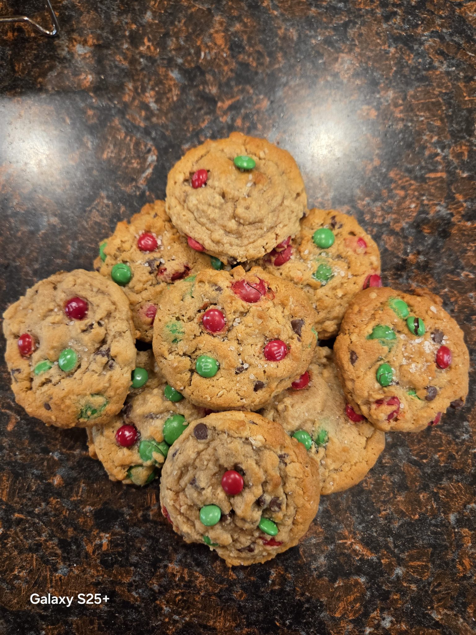 Whether enjoyed at a holiday party or in a cookie box, left out for Santa, or shared with loved ones over a cup of cocoa, my Christmas Monster Cookies are a delightful treat that adds a touch of whimsy and warmth to the festive season.