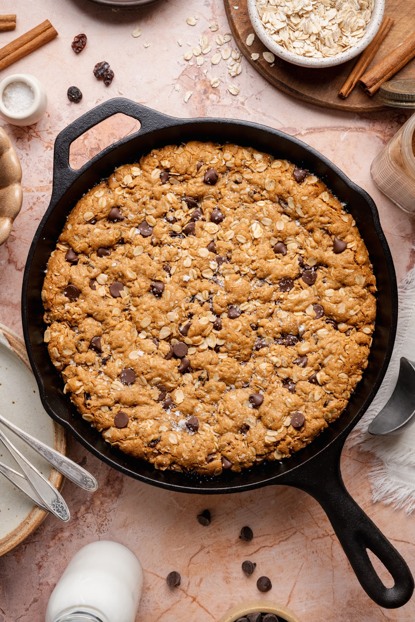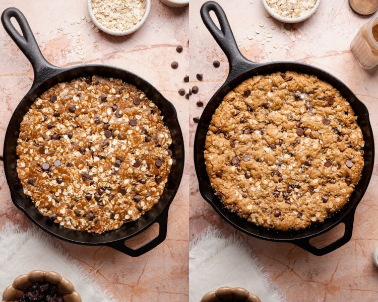 - Raisins & Chocolate Chips: I love using BOTH when I make this cookie skillet, but you can feel free to use one or the other if you don’t want both flavors.