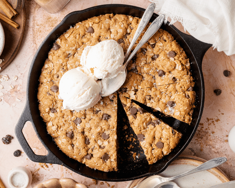 This Oatmeal Raisin Chocolate Chip Cookie Skillet is my go-to when I want a dessert that feels cozy and nostalgic but still a little elevated.