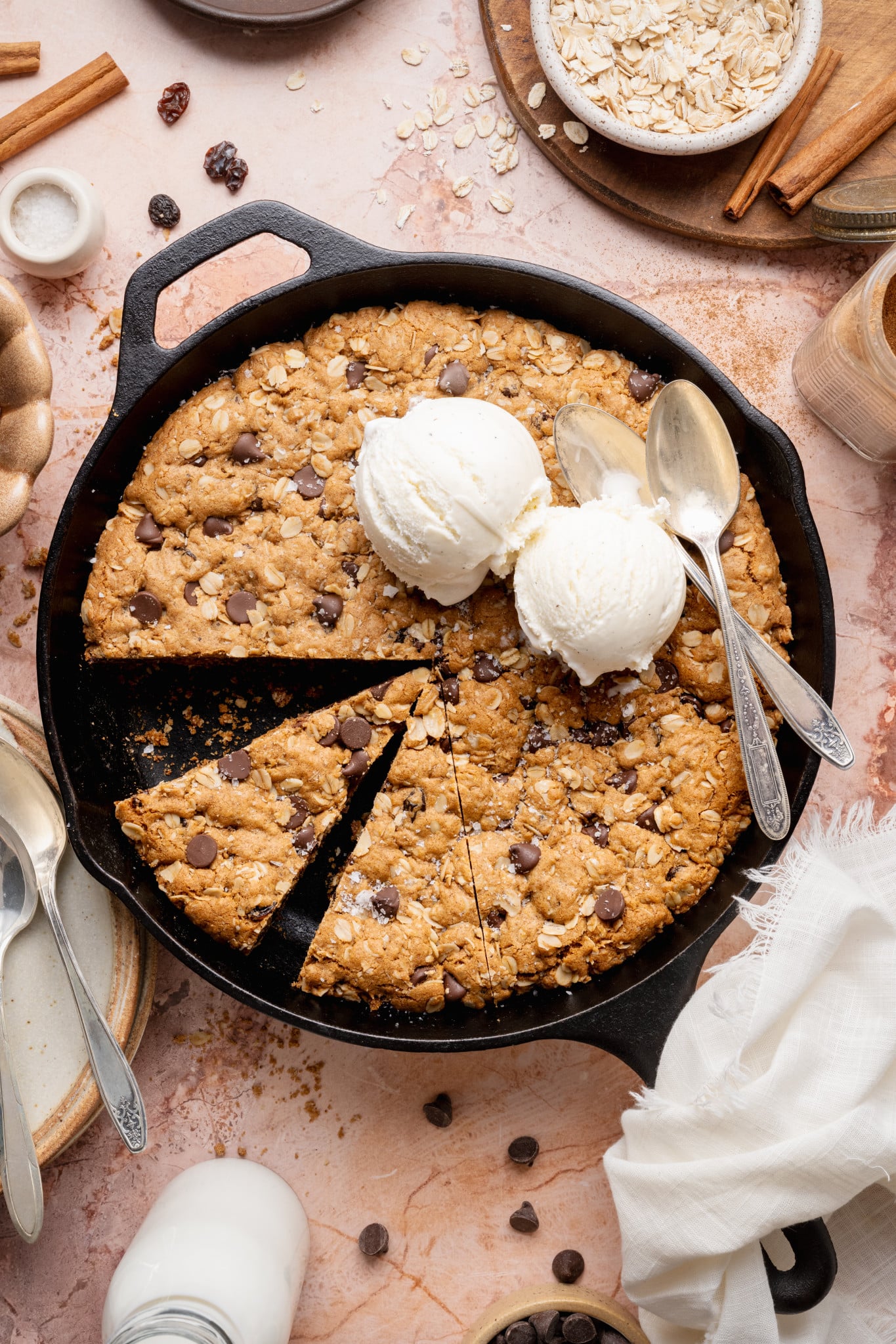- Old-Fashioned Rolled Oats: What give this skillet its hearty, classic oatmeal cookie texture. I always use old-fashioned rolled oats because they hold their shape and give the cookie that perfect chewy bite.