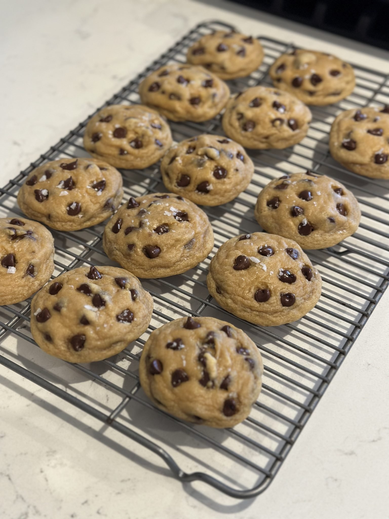 - Allow to cool on the cookie sheet for just about 5 minutes then carefully transfer to a wire rack to cool completely. Finish with flaky sea salt, if using, and enjoy! PS: I love these cookies the longer they sit, like after an hour or 2 out of the oven is perfect. But next day, with morning coffee? Game over. SO GOOD!flaky sea salt (such as Maldon), optional for finishing