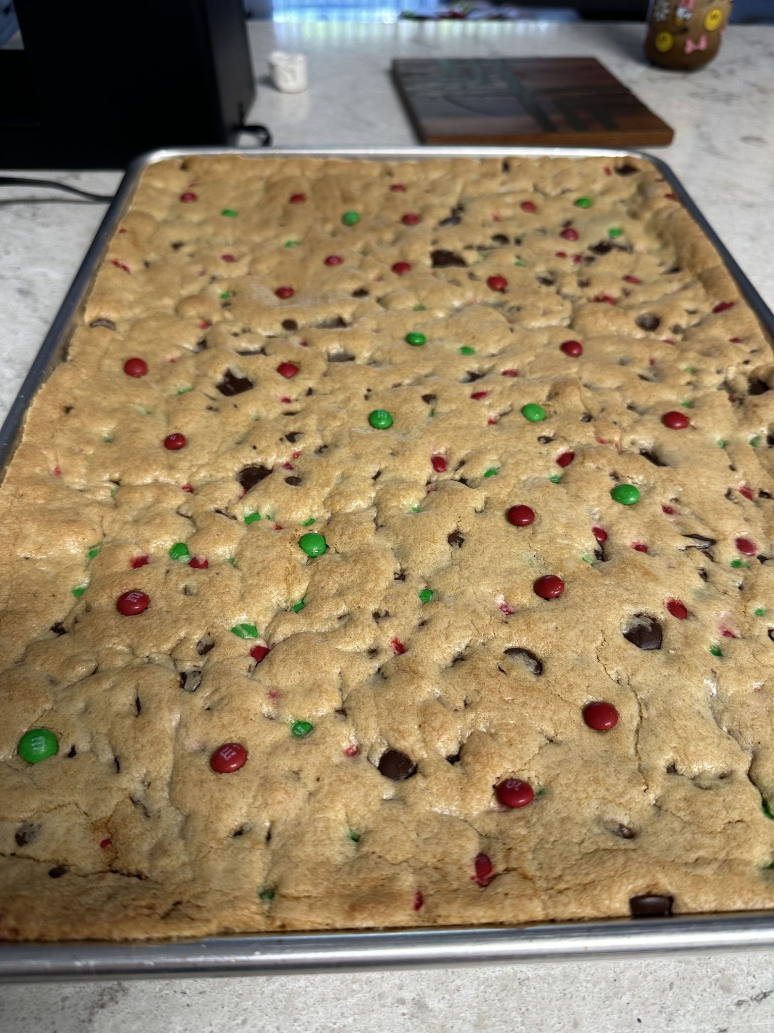- This recipe is so convenient! Instead of scooping and portioning out individual cookies and baking them in batches, you can spread the dough in one even layer on a sheet pan. This saves time and effort, making it easier to whip up a large batch of cookies in one go.