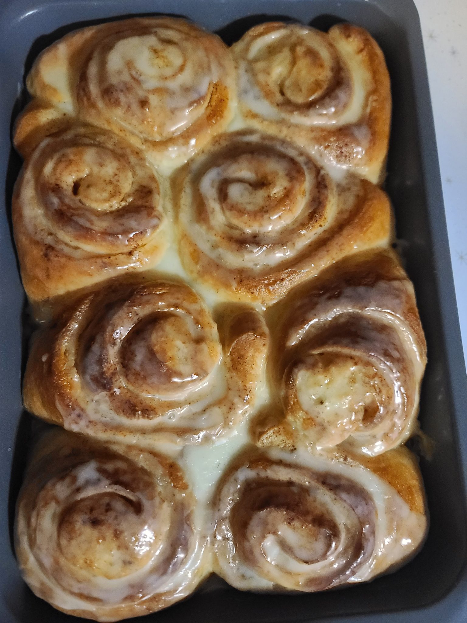 - Bake and make glaze. Let the rolls cool ~5-10 minutes before adding the glaze & enjoy warm.