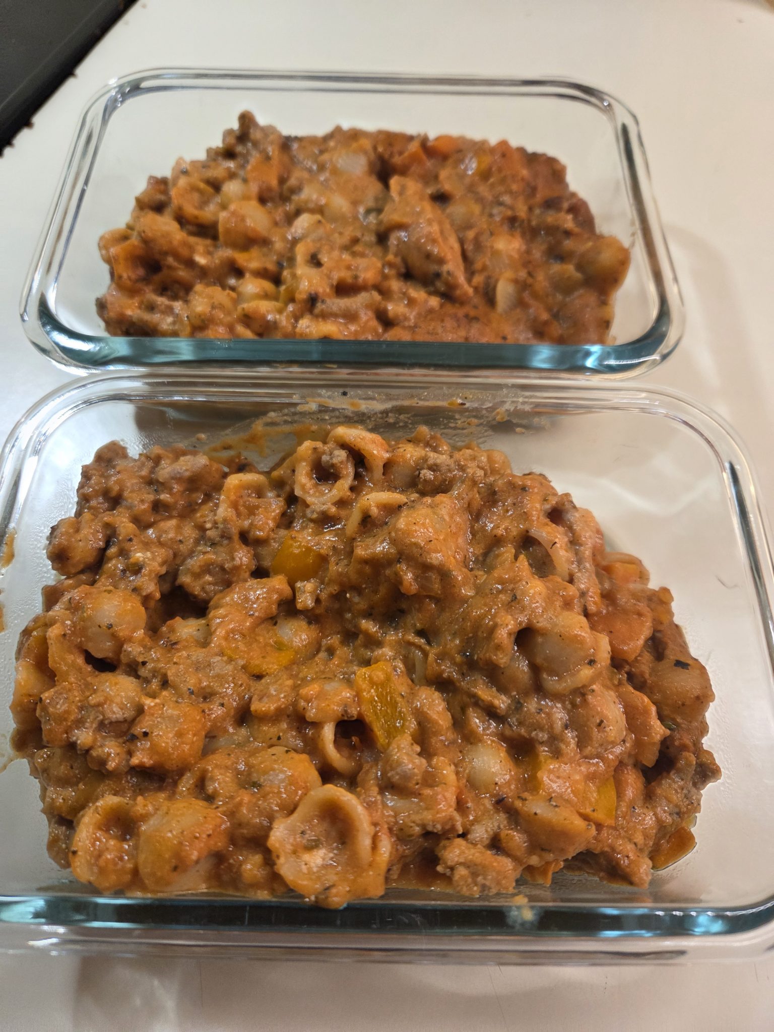 This quick dinner was simply amazing! I truly get tired of eating the same things and am not scared to just try something different. The flavors are amazing I honestly just used Tony Chachere’s, Italian Seasoning, and pepper instead of salt. My family enjoyed it. It reminds me of a Gourmet Hamburger Helper. I will definitely try it again. Picture is after dinner in a storage container.