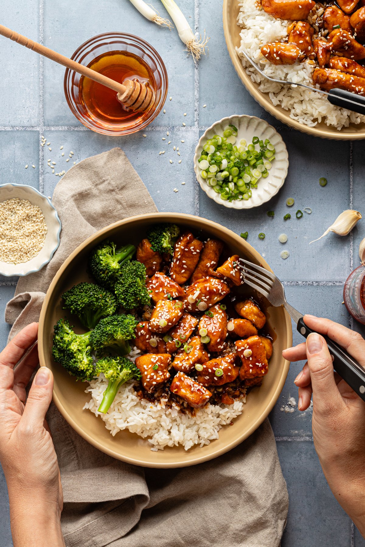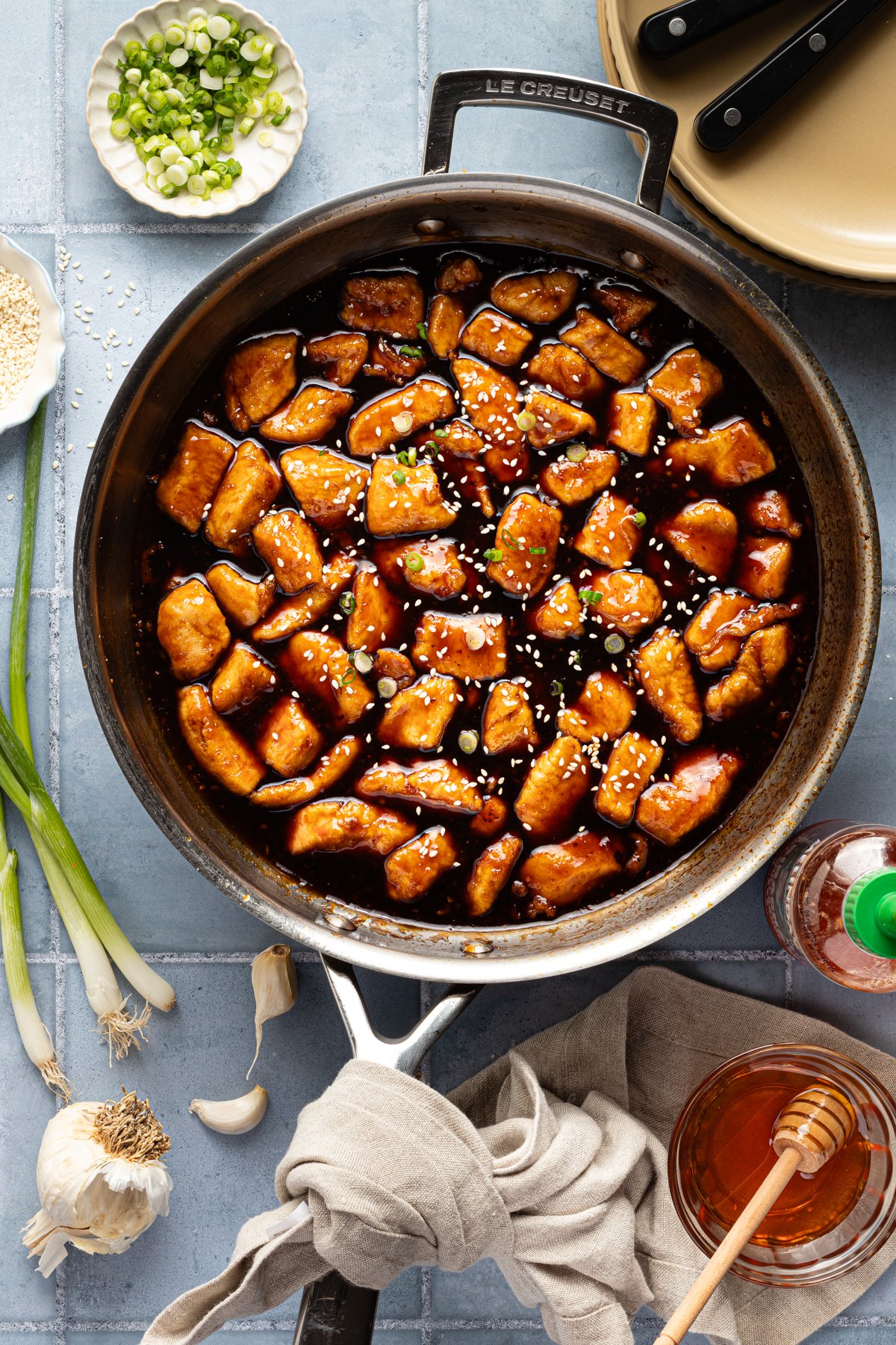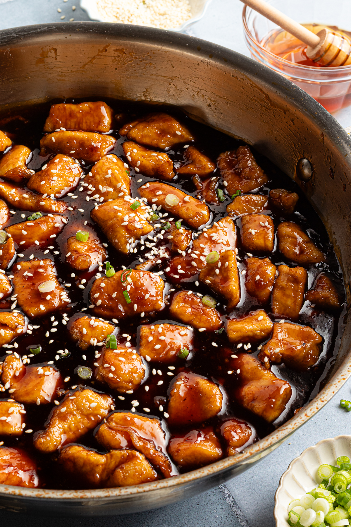 I recently gave this recipe a little refresh, and the updates truly take it to the next level. Tossing the chicken in cornstarch gives the chicken a light, crisp texture while also helping the sauce cling to every piece. Now it tastes like a recipe that came straight out of a restaurant.