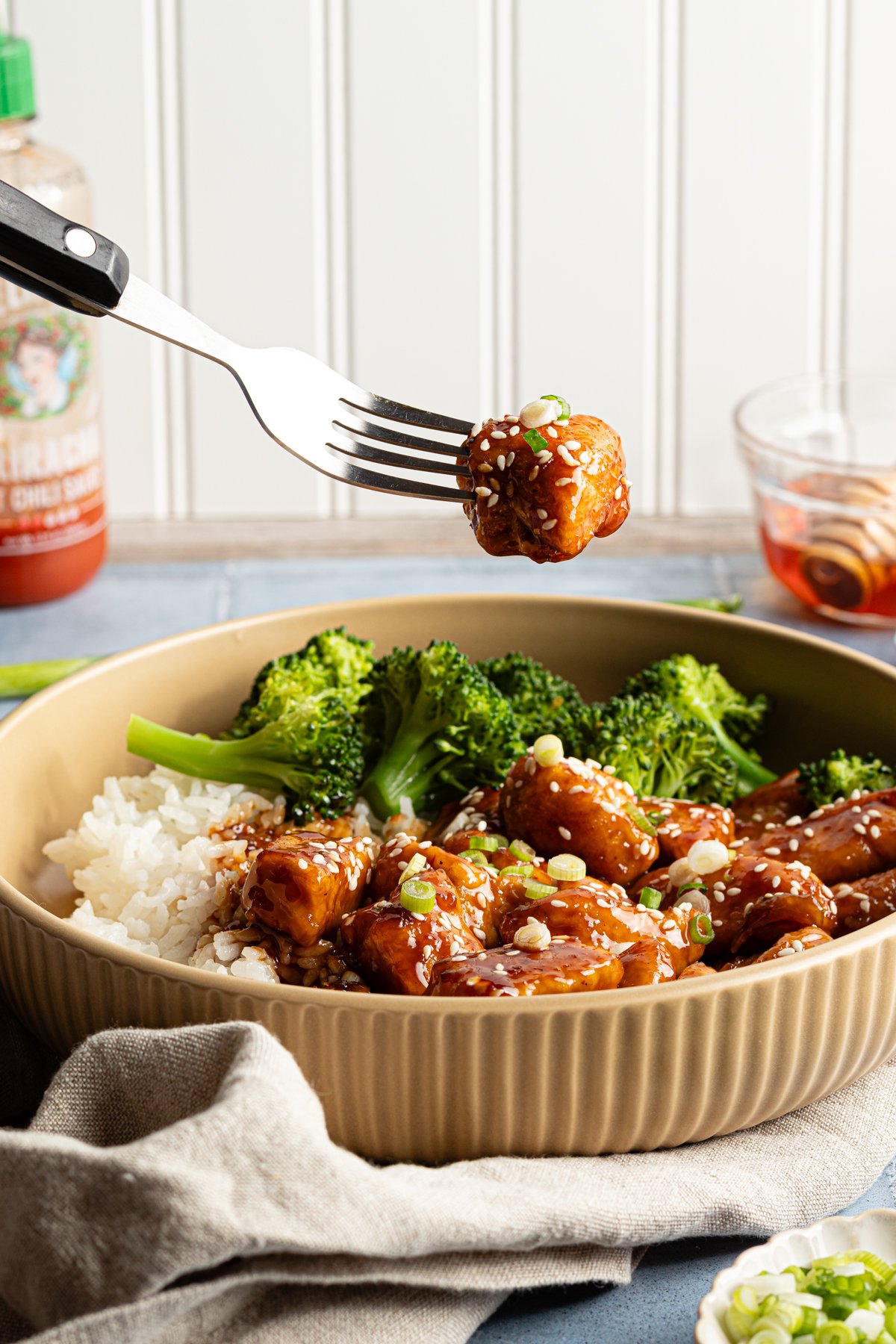I also adjusted the sauce so the honey and garlic really shine, creating the perfect balance of sweet and savory in every bite. The sriracha is also now optional, so you can customize the spice level to your and your family’s preference (which can be helpful if making for little ones!).