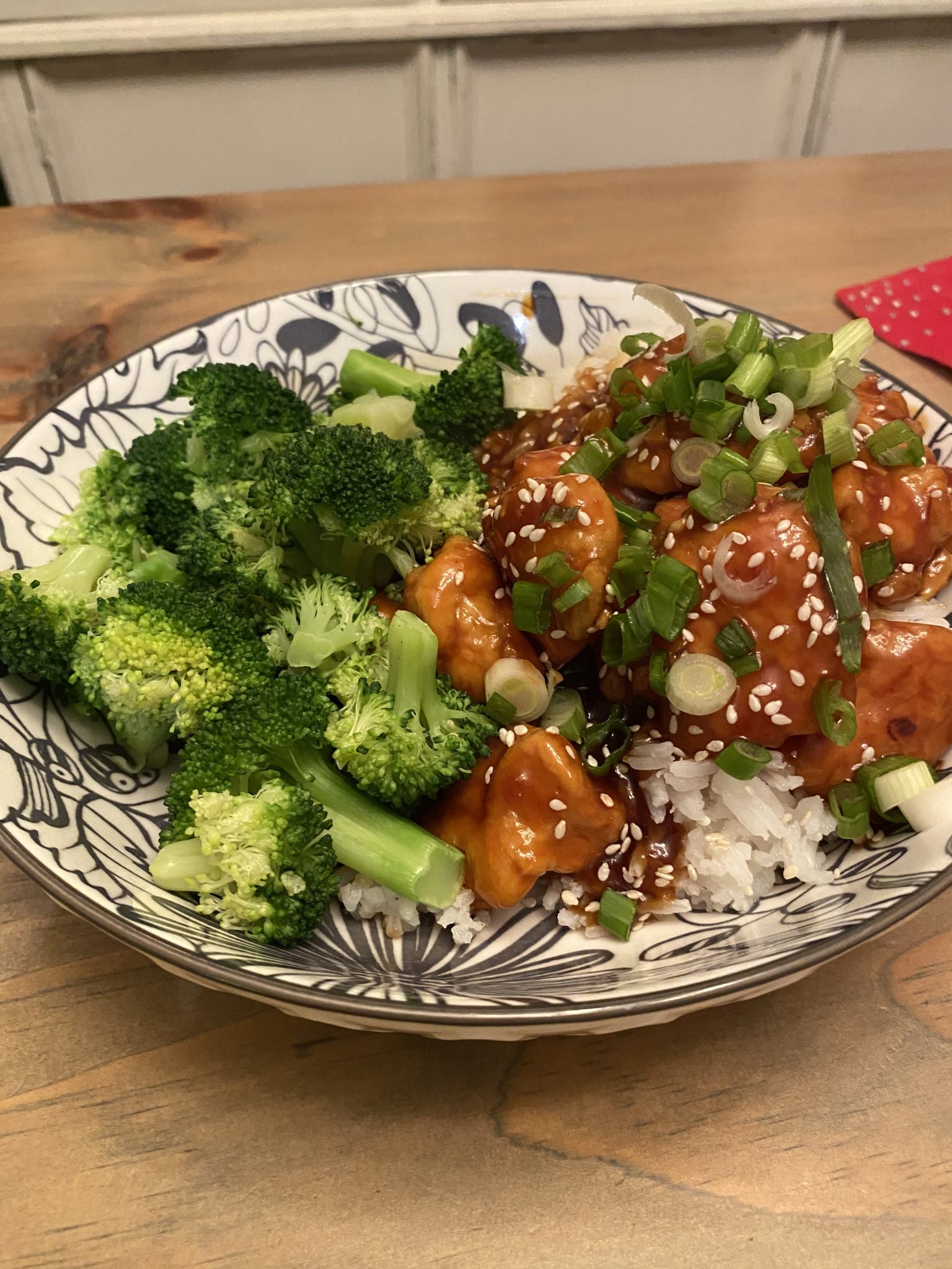 Assemble your bowls with rice, chicken, and broccoli. Garnish with green onions and sesame seeds and ENJOY!!