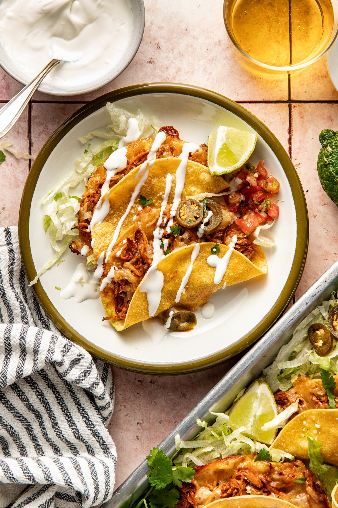 • Use saucy chicken. The moisture helps flavor the entire taco and keeps the inside tender as it crisps.