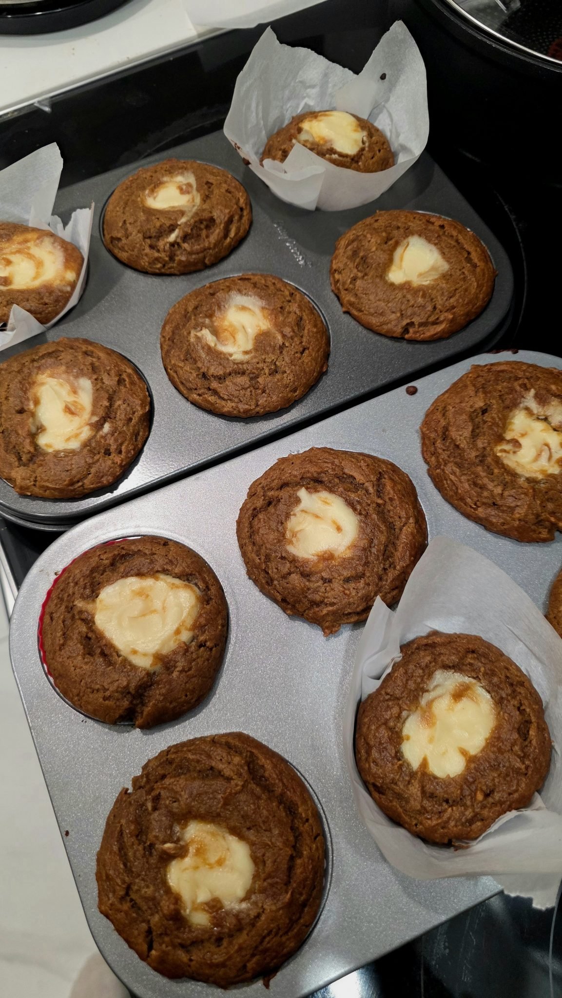 - Feel free to swirl the cream cheese in the muffins, instead of the dollop in the middle.