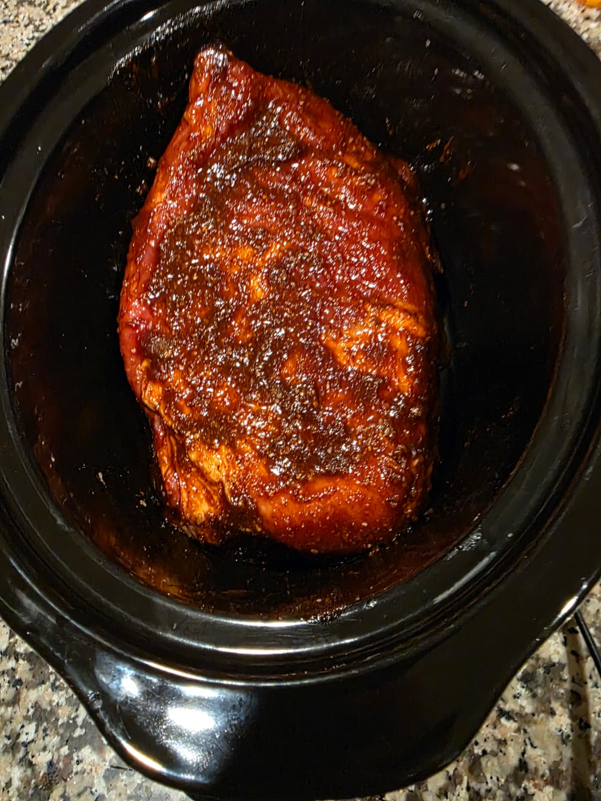 What a great recipe for a crock pot version, I only added a bit of liquid smoke to give it a smokey flavor. Great recipe!