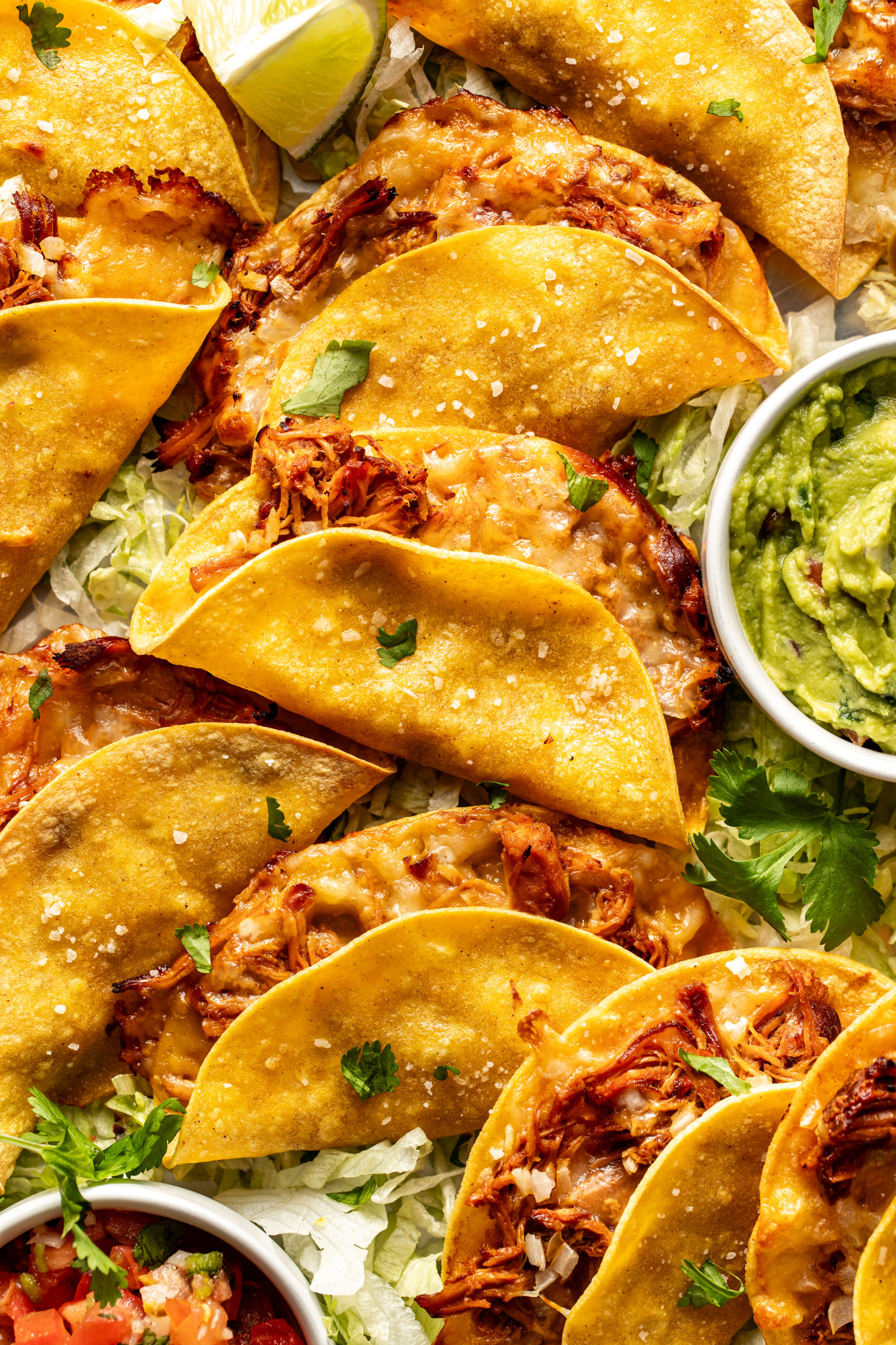 They're made using my Slow Cooker Honey Chipotle Chicken, which is combined with melty cheese and baked in crispy tortillas for an easy weeknight dinner that is guaranteed to make Taco Tuesday your favorite night of the week!